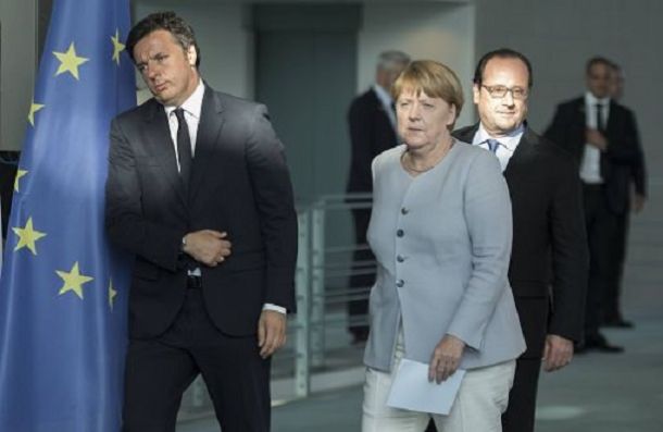BRATISLAVA – Nonostante i sorrisi, le pacche sulle spalle, le amichevoli conversazioni avute a Ventotene e a Maranello, a casa di Marchionne, quando si tratta di difendere gli interessi nazionali Merkel e Hollande fanno pesare le ragioni di Germania e Francia. Dopo un giorno di discussioni inconcludenti al vertice dei 27 Paesi Ue a Bratislava, il premier italiano non ha partecipato alla conferenza stampa finale. Così si è presentato davanti ai giornalisti visibilmente irritato: «Non sono soddisfatto delle conclusioni del vertice su crescita e immigrazione. Per questo non posso fare una conferenza stampa con Merkel e Hollande non condividendo le conclusioni come loro. Se Francia e Germania vanno d’accordo su alcune questioni sono felice per loro. Io non sono soddisfatto sulle soluzioni su politica economica e su migranti. Non ho mai pensato che il direttorio a tre (ovvero Germania, Francia e Italia, ndr) è la soluzione ai nostri problemi».