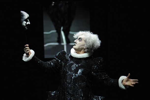 Sandro Lombardi in CALDERÓN di Pier Paolo Pasolini, drammaturgia Sandro Lombardi, Fabrizio Sinisi e Federico Tiezzi, con (in ordine di apparizione) Camilla Semino Favro, Arianna Di Stefano, Sabrina Scuccimarra, Graziano Piazza, Silvia Pernarella, Ivan Alovisio, Lucrezia Guidone, Josafat Vagni, Debora Zuin, Andrea Volpetti e con la partecipazione straordinaria di Francesca Benedetti; scene Gregorio Zurla; costumi Giovanna Buzzi e Lisa Rufini; luci Gianni Pollini; movimenti coreografici Raffaella Giordano; canto Francesca Della Monica; assistente alla regia Giovanni Scandella; regia Federico Tiezzi.