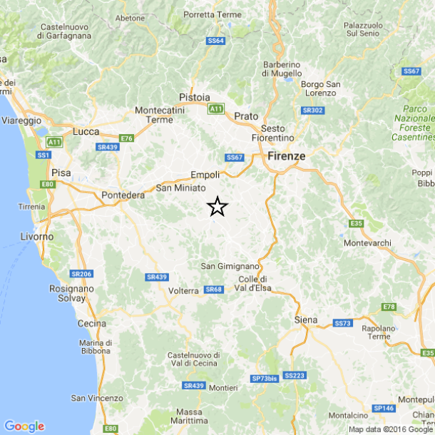 FIRENZE – Un terremoto di magnitudo 3.9 è stato registrato nella provincia di Firenze fra Castelfiorentino e Certaldo alle ore 18,53. Sul sito dell’Istituto nazionale di geofisica è segnalata altra scossa precedente di minore entità, magnitudo 2,2. La scossa è stata avvertita distintamente a Firenze e in provincia, ma dalle prime informazioni tante le telefonate ai vigili del fuoco ma non risulterebbero danni. A scopo precauzionale e per tranquillizzare la popolazione il comando provinciale dei vigili del fuoco di Firenze sta inviando a San Casciano val di Pesa, zona dalla quale sono arrivate gran parte delle telefonate, un’unità di comando locale con due squadre operative.