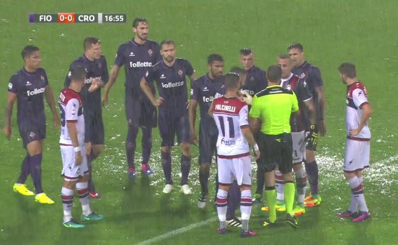 Fiorentina bloccata dal Crotone nel temporale: 1-1. Partita sospesa. Poi viola sotto. Rimedia Astori nel finale. Pagelle