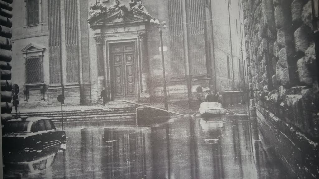 SAN MARCO – Alle 6 di sera del 4 novembre, piazza San Marco era un lago in tempesta. Lo alimentava un tributario impetuoso e vorticoso, che proveniva da piazza dell’Annunziata, lambiva il basamento della chiesa e volgeva precipite lungo via Cavour, verso il Duomo, Al suo scroscio sinistro si mescolava un immenso e sommesso brusìo umano. I fiorentini rimasti nella parte risparmiata dall’alluvione commentavano a bassa voce. Non si sentivano pianti, né lamenti. In quelli che potei vedere da vicino, o con cui potei parlare, trovai una trepida ansia per le sorti di persone rimaste nella parte della città invasa dalle acque. E un doloroso stupore per quello che era accaduto. Nulla di più. Né allora, né a tarda sera, né nella notte – quell’indimenticabile notte trascorsa in lugubre veglia sui bordi dell’altra città, di quella città che l’acqua ci aveva fatta lontana, misteriosa, inaccessibile come il mondo abitato di un altro pianeta, e pure ci sfiorava con l’alito, con il respiro affannoso – ci fu una sola scena di disperazione.