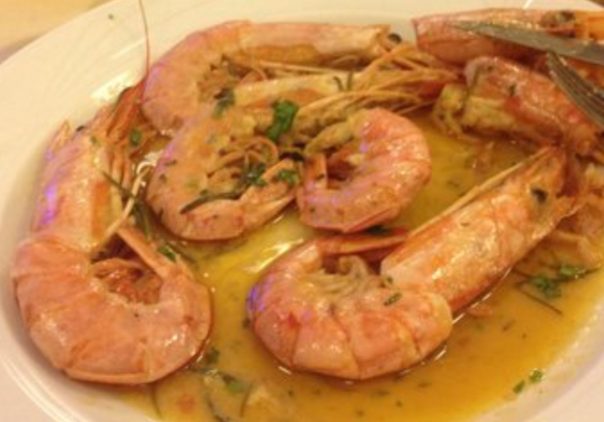 16 gamberoni grandi , succo di 2 limone, 2 spicchi d’aglio, 1/2 bicchiere di olio extra vergine di oliva, mezzo bicchiere di vino bianco, prezzemolo tritato