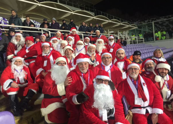 FIRENZE – Grande successo per l’iniziativa della Compagnia di Babbo Natale: in occasione della partita Fiorentina-Napoli. I 70 Babbi presenti allo Stadio Artemio Franchi hanno raccolto più di 6000 euro grazie all’ospitalità della AC Fiorentina e allo spirito di solidarietà dei tifosi viola. La cifra raggiunta grazie alle donazioni è destinata ai bambini bisognosi della Città di Firenze, individuati tra i ragazzi assistiti dai Servizi Sociali del Comune e dalla Caritas.