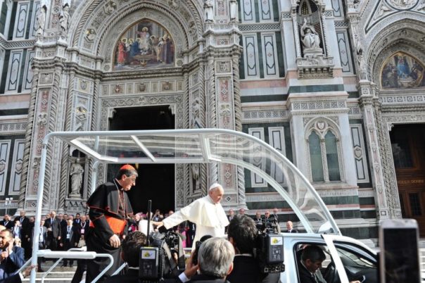 FIRENZE – Una lapide che ricorda la visita di Papa Francesco nel Duomo di Firenze, il 20 novembre del 2015 in occasione del Convegno ecclesiastico nazionale, è stata scoperta oggi in cattedrale dal Cardinale Giuseppe Betori, Arcivescovo di Firenze, a conclusione del Te Deum. La lapide, realizzata dall’Opera di Santa Maria del Fiore con marmo bianco di Carrara e marmo bardiglio, è stata collocata nella parete destra del Duomo accanto a quella che ricorda la visita di Paolo VI del 1966, quando il Papa volle celebrare la messa della notte di Natale nella città colpita dall’alluvione.