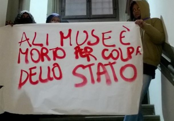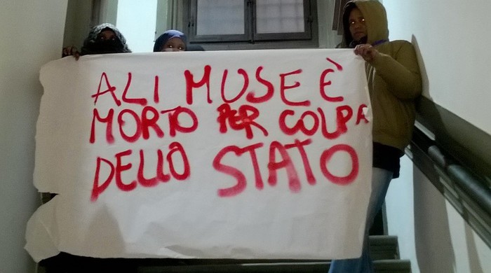 FIRENZE – Protesta e attimi di tensione davanti alla prefettura di Firenze, stamani 12 gennaio, da parte di alcuni degli occupanti dello stabile di Sesto Fiorentino, dove si è sviluppato l’incendio nel quale è morto l’extracomunitario. Alcuni manifestanti hanno srotolato lo striscione con la scritta: «Ali Muse è morto per colpa dello Stato».
