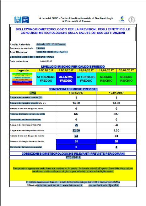 Continua anche l’ondata di basse temperature e domani, martedì 17 gennaio, per il bollettino del Centro interdipartimentale di bioclimatologica dell’università di Firenze (Cibic), diffuso dalla Protezione civile del Comune, si raggiungerà la soglia dell’ ‘allarme freddo’ (oggi invece siamo a quella di ‘attenzione fredddo’).