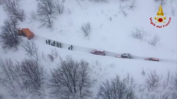 * 12.00 – la colonna dei mezzi dei soccorsi arriva a poche centinaia di metri dall’albergo. Dopo 20 ore, facendo l’ultimo tratto a piedi, raggiungono il luogo del disastro.