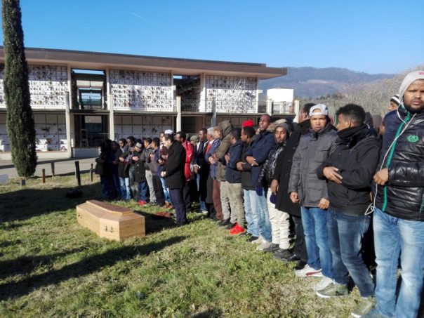 TRESPIANO – Oltre un centinaio di cittadini somali, parenti ed amici, hanno partecipato ai funerali di Alì Muse Mohamud, 44 anni, il somalo morto nel rogo del capannone-rifugio a Sesto Fiorentino dieci giorni fa. Al cimitero di Trespiano, sulle colline di Firenze, i somali sono arrivati con un pullman affittato da Osman Gaal, il rappresentante della comunità somala a Firenze. Nel settore dei musulmani la bara è stata tumulata dopo una breve cerimonia alla quale ha partecipato l’imam di Firenze, presidente dell’Ucoii, Izzedin Elzir. E’ stato lui a sottolineare come Muse «ha sacrificato la vita per la sua famiglia», quando ha deciso di rientrare nel capannone dell”ex mobilificio Aiazzone, già in fiamme, per prendere i documenti che gli servivano per il ricongiungimento con la sua famiglia. L’imam ha ricordato come tutti coloro che muoiono per una calamità naturale, o per un incendio o un naufragio, per la religione musulmana sono shaheed, ossia martiri. Izzedin Elzir ha invitato tutti i presenti ad essere ora accanto alla sua famiglia, perché comunque Alì sta vivendo un’altra vita, quella eterna.