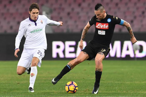 CRISTOFORO – Resta fuori Borja Valero. Sousa prova Cristoforo. Qualche preoccupazione dei tifosi viola in difesa, con Tomovic centrale per via dell’infortunio di Gonzalo. Per il resto gioca la Fiorentina vincente di questo bel gennaio. Nel Napoli mini turn over: fuori Mertens e in campo il neo acquisto Pavoletti. Oltre trentamila gli spettatori. Qualche centinaio di tifosi sono arrivati da Firenze. Sarri non è in panchina: squalificato. Lo sostituisce il vice Cantona. Che, su ordine dell’allenatore titolare, vuole una squadra subito aggressiva, ma i viola riescono a contenere le puntate di Callejon e Insigne. Soffre Maxi Olivera. Ma improvvisamente, all’11’, Bernardeschi parte in contropiede e arriva a tirare. Buona l’idea, meno la conclusione. Reina para senza difficoltà. La Fiorentina comincia a macinare gioco, ma rischia tanto (17’) quando Sanchez sbaglia un appoggio e serve Hamsik che però calcia non bene e Tatarusanu blocca. Poi è Chiesa che impegna Reina.