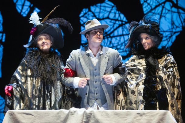 Lucia Poli, Milena Vukotić, Marilù Prati in «Sorelle Materassi», libero adattamento di Ugo Chiti dal romanzo di Aldo Palazzeschi; regia Geppy Gleijeses. Con Gabriele Anagni, Sandra Garuglieri, Gian Luca Mandarini, Roberta Lucca. Scene di Roberto Crea, costumi di Ilaria Salgarella, Clara Gonzales, Liz Ccahua, coordinate da Andrea Viotti, musiche di Mario Incudine, luci di Luigi Ascione. Una produzione Gitiesse Artisti Riuniti in collaborazione con Festival Teatrale di Borgio Verezzi.