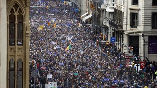 Una sfida al governo, l’ennesima contro la decisione di ospitare soltanto 1.100 persone, dei 16 mila previsti dall’Unione Europea. A rispondere all’appello di molte personalità della cultura e della politica, sono state 160.000 persone, secondo la polizia municipale, e addirittura mezzo milione secondo gli organizzatori. La giornata pro immigrati in un clima molto festoso è culminata con una coreografia realizzata dal celebre gruppo teatrale Fura dels Baus. La piattaforma alla base della «giornata rivendicativa» fissa anche una cifra di stranieri da accogliere in Catalogna «almeno 4.500».