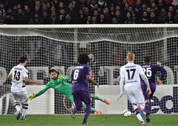 PALO – Si comincia con i rumorosi tifosi tedeschi capaci di riempire il Franchi di cori per i giocatori di Hecking. Tifosi, devo dirlo, assai discreti e per nulla fastidiosi durante la giornata in città. Vogliosi, anzi di fotografare Palazzo Vecchio e il Duomo. E anche disposti a pazientare in coda all’Accademia per vedere il David celebrato dalla loro cancelliera, Angela Merkel, in occasione della visita a Firenze. Ai tempi di Renzi premier… Comunque è così che dovrebbero essere i tifosi in trasferta: le Coppe come occasione di turismo e conoscenza e non di città blindate. Bevono ettolitri di birra, certo, ma la cronaca, almeno fino al calcio d’inizio, non si è dovuta preoccupare di loro. Fa discutere, invece, la formazione della Fiorentina: con Sanchez di nuovo terzino destro. Non era meglio Salcedo? Speriamo abbia ragione Sousa. Si comincia con un pizzico di batticuore: Sanchez< e Gonzalo si fanno aggirare. Rimedia Astori alla grande. Ancora più pericolosa (4’) una discesa di Wendt, sempre dalla parte di Sanchez, palla in mezzo e la difesa viola deve ancora metterci una pezza. Borussia pericoloso e determinato. Wendt ha davanti un’autostrada libera, nessuno lo controlla. E al 7’ mette un tgranm pallone sulla testa di Westergaard che colpisce il palo alla destra di Tata. Poi punizione di Hazard sulla barriera. Fiorentina sveglia!