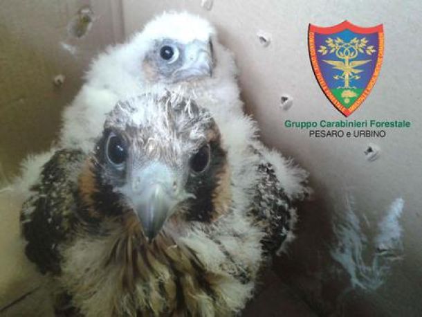 PESARO – Un traffico di rapaci tra Marche e Toscana è stato bloccato dal Gruppo Carabinieri Forestale di Pesaro Urbino. I pulli, piccoli di rapace, venivano prelevati direttamente dal nido per essere poi rivenduti illecitamente. Si tratta di pulli di falco pellegrino, noto per la velocità e capace di raggiungere in picchiata, durante la caccia, la velocità di quasi 300 km orari.