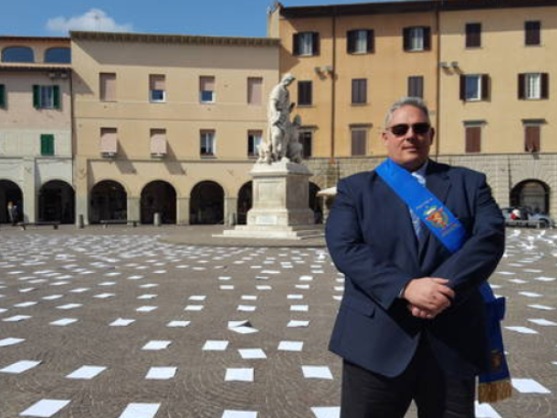 Province: protesta del presidente di Grosseto, duemila fogli bianchi sul selciato di Piazza Dante
