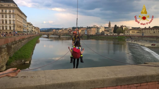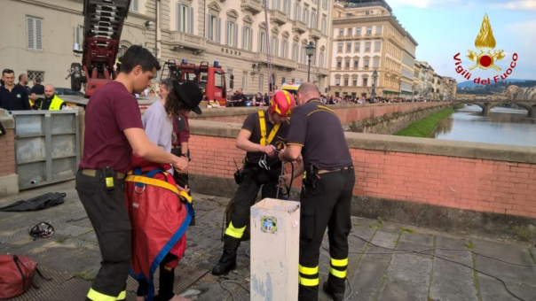 FIRENZE – I vigili del fuoco di Firenze sono intervenuti all’altezza della pescaia di Santa Rosa, nel tratto cittadino del fiume Arno, per un soccorso a persona. L’uomo stava percorrendo la pescaia in direzione della riva destra, quando si è trovato in difficoltà ed impossibilitato a risalire. I vigili del fuoco con una manovra SAF (Speleo Alpino Fluviale) e l’ausilio dell’autoscala lo hanno raggiunto, soccorso ed imbracato per poi recuperarlo e consegnarlo al 118 per accertamenti.