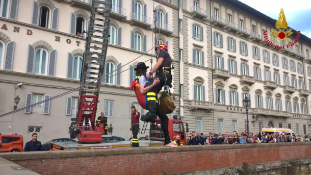 Le fasi del salvataggio effettuato dai vigili del fuoco alla Pescaia di Santa Rosa, a Firenze