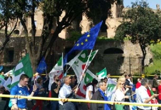 In mattinata c’erano stati anche cortei per così dire istituzionali, come quello sceso in piazza per «La nostra Europa» organizzato da Rifondazione comunista, Sinistra europea, Cgil – con la leader Susanna Camusso e il numero uno della fiom Maurizio Landini – Verdi, Partito comunista e l’Altra Europa con Tsipras, Diem25 – il movimento dell’ex ministro delle Finanze greco Yanis Varoufakis, che ha sfilato dietro lo striscione con la moglie – Sinistra italiana con Fratoianni, Legambiente, Uil, Cobas.