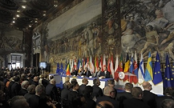 Inizia così il Documento di Roma firmato dai leader dei 27 Paesi che aderiscono all’Ue, e prosegue: «L’unità europea è iniziata come il sogno di pochi ed è diventata la speranza di molti. Fino a che l’Europa non è stata di nuovo una. Oggi siamo uniti e più forti: centinaia di milioni di persone in tutta Europa godono dei vantaggi di vivere in un’Unione allargata che ha superato le antiche divisioni. L’Unione europea è confrontata a sfide senza precedenti, sia a livello mondiale che al suo interno: conflitti regionali, terrorismo, pressioni migratorie crescenti, protezionismo e disuguaglianze sociali ed economiche. Insieme, siamo determinati ad affrontare le sfide di un mondo in rapido mutamento e a offrire ai nostri cittadini sicurezza e nuove opportunità».