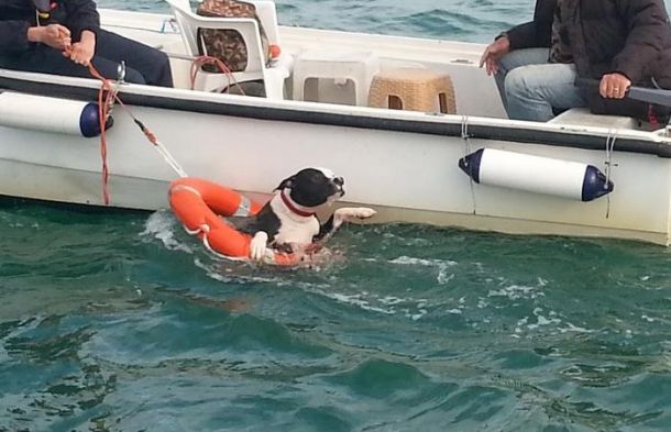 Grazie anche alla collaborazione fornita da un natante in navigazione nei paraggi, spiega la guardia costiera, il cane, ormai allo stremo delle forze, è stato preso dal collare mediante un’asta con un gancio, in dotazione alla motovedetta.