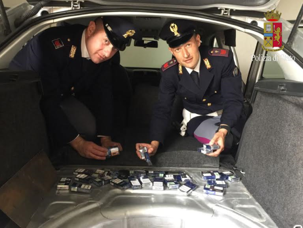 FIRENZE – Sono stati intercettati dalla Polizia stradale con la macchina piena di sigarette. Il trasporto via terra di tabacchi lavorati all’estero è ritenuto redditizio, tant’è che la Polstrada ha incrementato i controlli sulle principali vie di comunicazione della Toscana. Nella rete sono rimasti impigliati due stranieri, trentenni, che ieri stavano percorrendo l’A/1 per recarsi in Campania, ove volevano piazzare circa 45 chili di «bionde». Si trattava di oltre 2.200 pacchetti di Bond e Rothmans che, immessi sul mercato, avrebbero fruttato ai malfattori quasi 10.000 euro.