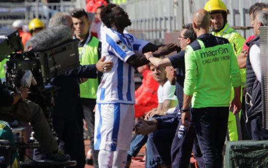 CAGLIARI – Brutto episodio al Sant’Elia. Sulley Muntari, centrocampista ghanese del Pescara, ha abbandonato il campo nel finale del match con il Cagliari a causa di alcuni cori razzisti intonati nei suoi confronti arrivati dagli spalti. Nel convulso e nervosissimo finale di gara, il centrocampista si è scagliato contro l’arbitro Minelli, chiedendo l’interruzione del match per insulti a sfondo razziale. Il direttore di gara al 91′, ritenendo eccessive le sue proteste, ha deciso di comminare il cartellino giallo all’ex Milan, che infuriato ha scelto di andarsene e di lasciare la sua squadra in 10 uomini per gli ultimi secondi della partita.