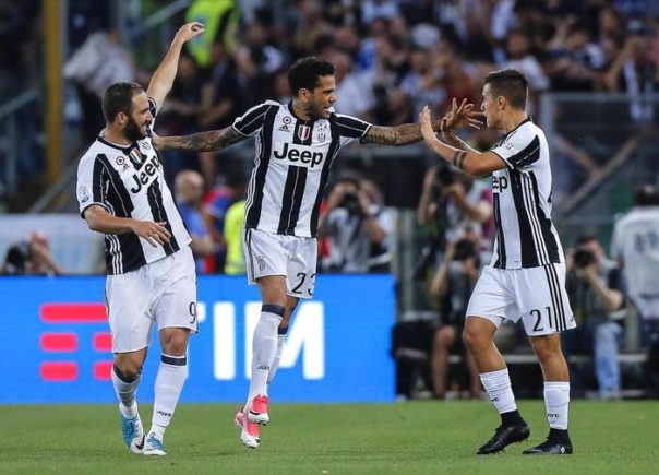 ROMA – La Juventus vince per la 12/a volta la Coppa Italia battendo 2-0 la Lazio nella finale giocata all’Olimpico di Roma. Partita già decisa nel primo tempo: dopo un palo di Keita al 6′, la Juve è andata in vantaggio al 12′ con Dani Alves che insacca al volo di piatto destro dopo un lancio dalla sinistra di Alex Sandro. Al 18′ Dybala va al tiro, Strakosha respinge e poi dice di no alla successiva conclusione di Higuain. Il raddoppio bianconero arriva al 25′: corner dalla sinistra di Dybala, Alex Sandro prolunga di testa, facile il tocco ravvicinato di Bonucci. La Lazio si fa vedere al 32′ con un colpo di testa di Immobile. Al 53′ il neoentrato Felipe Anderson impegna Neto che mette in calcio d’angolo. Higuain va vicino al 3-0 al 71′, salva Biglia. La Lazio si rende pericolosa con Immobile e nel finale Strakosha salva ancora su Higuain. Per la Juventus è il primo passo verso il triplete.