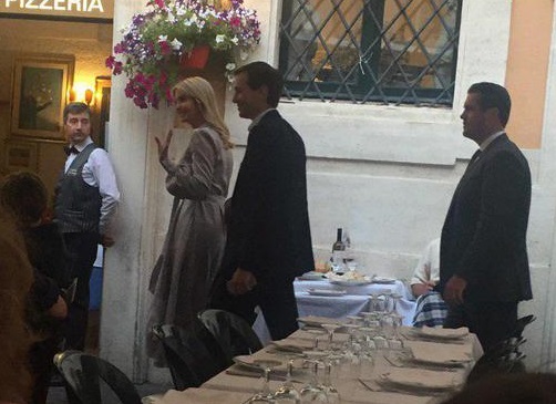 La figlia del presidente degli Stati Uniti, Ivanka Trump, ed il marito, Jared Kushner, sono a cena in un ristorante nel cuore di Roma, a piazza di Sant’Ignazio. La coppia è seduta al ristorante “Le cave di Sant’Ignazio”, locale a due passi dal Pantheon. La coppia ha assaggiato gli antipasti a base di mozzarella di bufala e bruschette prima di passare alle prime portate. Abbiamo servito gnocchi e cacio e pepe, racconta Luigina, proprietaria del ristorante a conduzione familiare. La figlia del presidente americano è stata molto affabile e gentile, spiega ancora la titolare. Mi ha detto di essere molto felice di passare la serata in un posto accogliente, ci fa molto onore, ha concluso.