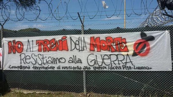 PISA – Alcune decine di militanti aderenti ai movimenti pacifisti e alla sinistra di base di Pisa e Livorno hanno effettuato stamani un presidio pacifico davanti alla base americana di Camp Darby a Tombolo (Pisa) per dire no alla costruzione di una nuova linea ferroviaria per potenziare il collegamento tra la base e il porto di Livorno trasportando armi ed esplosivi attraverso un territorio densamente popolato. Il progetto, spiega una nota dei promotori del presidio, presentato dalla Commissione mista costruzioni italo-statunitense, è stato approvato il 26 aprile dal Consiglio direttivo dell’Ente Parco Regionale Migliarino San Rossore Massaciuccoli e prevede la realizzazione di una nuova linea ferroviaria che dalla Stazione di Tombolo porta a un grande terminal all’interno di Camp Darby: la nuova linea, integrata da un ponte girevole sul Canale dei Navicelli, permette il transito di due treni al giorno. Suscita polemiche anche la decisione di tagliare mille pini all’interno dell’area protetta.