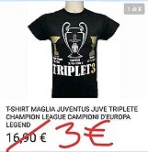 TORINO – I tifosi delle squadre nemiche della Juve hanno fatto circolare sui social una vignetta che prende in giro i tifosi e la società rivale. Sarebbero state preparate milioni di maglie celebrative del grande triplete, poste in vendita a 16,90 euro, messe adesso in liquidazione a soli 3 euro. La sconfitta nella finale di Champions, a Cardiff, ha deprezzato la Juve. Settima sconfitta su 9 finali fra i Campioni. Ma forse soltanto un po’. Intanto mezza Italia brinda al tonfo bianconero, ma è normale che il calcio viva anche di scherzi e di sfottò. Il fatto vero è che anche questa partita ha dimostrato quanto sia difficile arrivare in cima all’Europa sia difficilissimo. Le squadre italiane potranno comunque ritentare: il campionato 2017-18 qualificherà le prime quattro della classifica finale.