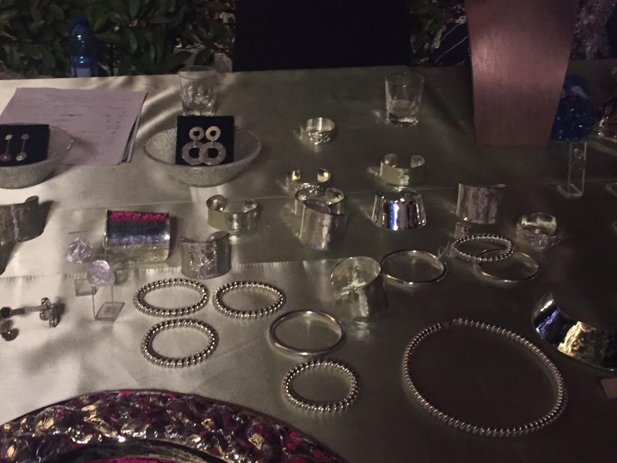 Un trionfo di artigianato artistico è stato esposto poi sul tavolo di ingresso, che comprende classici (come vassoi, ciotole, cornici, calici, collane, medaglie) e, da oggi, nuovi gioielli e anche un nuovo calice, creato in collaborazione con il cristallificio Locchi, il Brandimarte Cocktail, che sarà usato a La Loggia per tutto il mese. Bianca vuole rivalutare anche l’artigianato, perché, dice “gli artigiani forse oggi non sanno adattarsi al nuovo modo di vedere le cose: voglio fare un laboratorio di formazione nel vecchio negozio di via San Frediano. Ma voglio anche fare innovazione e, infatti, da dicembre apriremo un negozio super moderno, di super design con all’interno dei prodotti d’argento, di quelli tradizionali, battuti dall’artigiano: il contatto fra la tradizione e l’innovazione. Io ho ripreso un brand che vorrei legare anche a collezioni nuove, che già sto portando avanti, come la linea di fragranze per Acquaflor.” Ma la novità della serata è stata il calice tutto d’argento, presentato sulla torta di compleanno per Bianca.