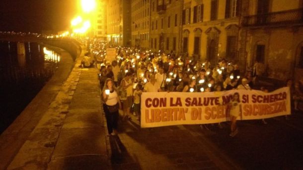 PISA – Migliaia di persone hanno partecipato a Pisa ad una fiaccolata contro la vaccinazione obbligatoria. Il corteo ha attraversando pacificamente le principali vie del centro cittadino aperto da un grande striscione sul quale è scritto: Con la salute non si scherza. Libertà di scelta e sicurezza. Al corteo, senza alcuna insegna di partiti politici, hanno partecipato almeno duemila persone che hanno scandito lo slogan libertà, libertà e tra loro erano presenti molte famiglie con bambini. La manifestazione assolutamente pacifica ha letteralmente invaso il centro storico sostituendosi di fatto al consueto affollamento di giovani che animano la movida pisana.