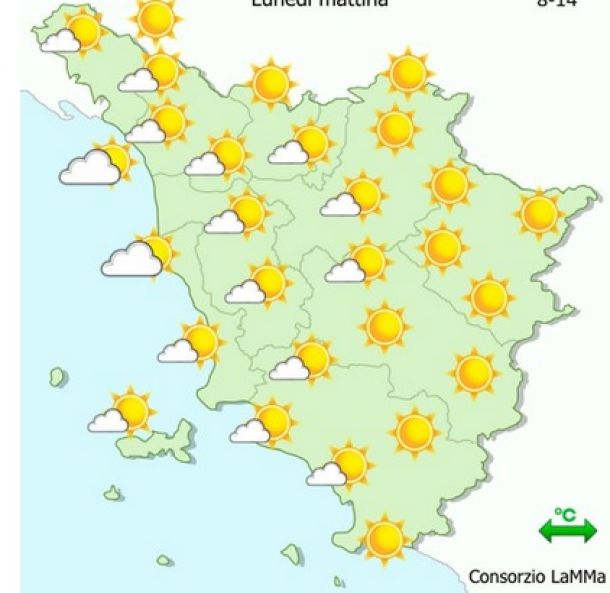 FIRENZE – Ecco le previsioni meteo per la Toscana fornite dal Lamma fino al 12 luglio: