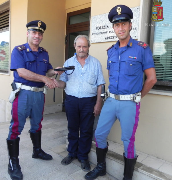 Poi è risalito in macchina per ritornare a Roma, ma si è accorto di non avere più con sé il borsello, con dentro i risparmi di una vita: 71 banconote da 50 euro, oltre a un libretto postale. Fortuna ha voluto che il gestore del bar si è accorto di ciò e ha chiamato la Polstrada. Una pattuglia della Sottosezione di Battifolle in un baleno è giunta sul posto, recuperando tutto. Nel frattempo, l’uomo è stato contattato e, appreso che tutti i soldi erano stati ritrovati, ha urlato per la gioia. Stamane la Stradale gli ha restituito il borsello e il danaro. Lui, prima di lasciare la caserma, ha ringraziato i poliziotti e si è commesso, confessando che la fisarmonica la comprerà più in là, poiché ora vuole godersi la somma recuperata.