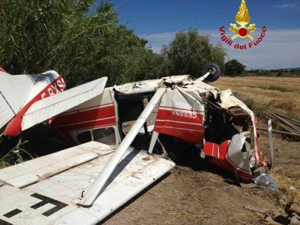 Cecina (Li): cade piccolo aereo. Cinque feriti, uno grave (foto)