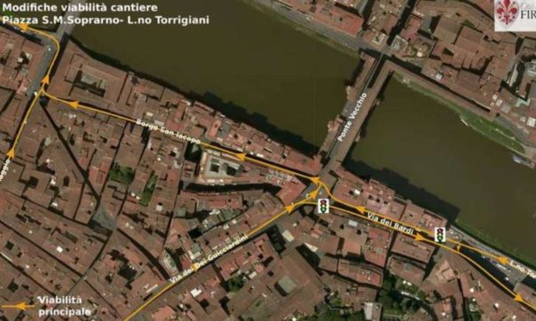 FIRENZE – Scatterà lunedì 17 luglio la modifica del cantiere in piazza Santa Maria Soprarno-lungarno Torrigiani. Grazie all’avanzamento dei lavori è possibile aprire il tratto tra il lungarno e via dei Bardi. In questo modo i veicoli provenienti dal lungarno potranno svoltare il via dei Bardi verso piazza dei Mozzi e anche, grazie all’istituzione di un senso unico alternato regolato da due semafori, proseguire in via dei Bardi verso Ponte Vecchio. Contestualmente sarà ripristinato in Borgo San Jacopo il senso di marcia verso piazza dei Frescobaldi.