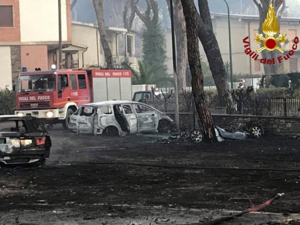 Nel rogo sono rimaste bruciate o danneggiate una decina di auto (ma potrebbero essere anche di più) parcheggiate lungo la strada, probabilmente di proprietà di chi abita in alcune villette nella zona che potrebbero essere minacciate dalle fiamme.