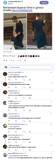 FIRENZE – Uno scoop (o presunto tale)  del Corriere della sera sulla prima immagine a Torino di Federico Bernardeschi, fotografato con pantaloni-gonna e borsetta (o) ha provocato commenti salaci e distruttivi per il giornale da parte dei lettori. Ricordano all’autore dello scoop che le foto, già pubblicate, erano state scattate davanti a un portone fiorentino. Commenti, ma ‘sta foto girava prima di Torino, che dite?; E’ una foto vecchia in centro a Firenze; Almeno informarsi prima di scrivere; questi i più educati, ma la maggior parte sono irriferibili.