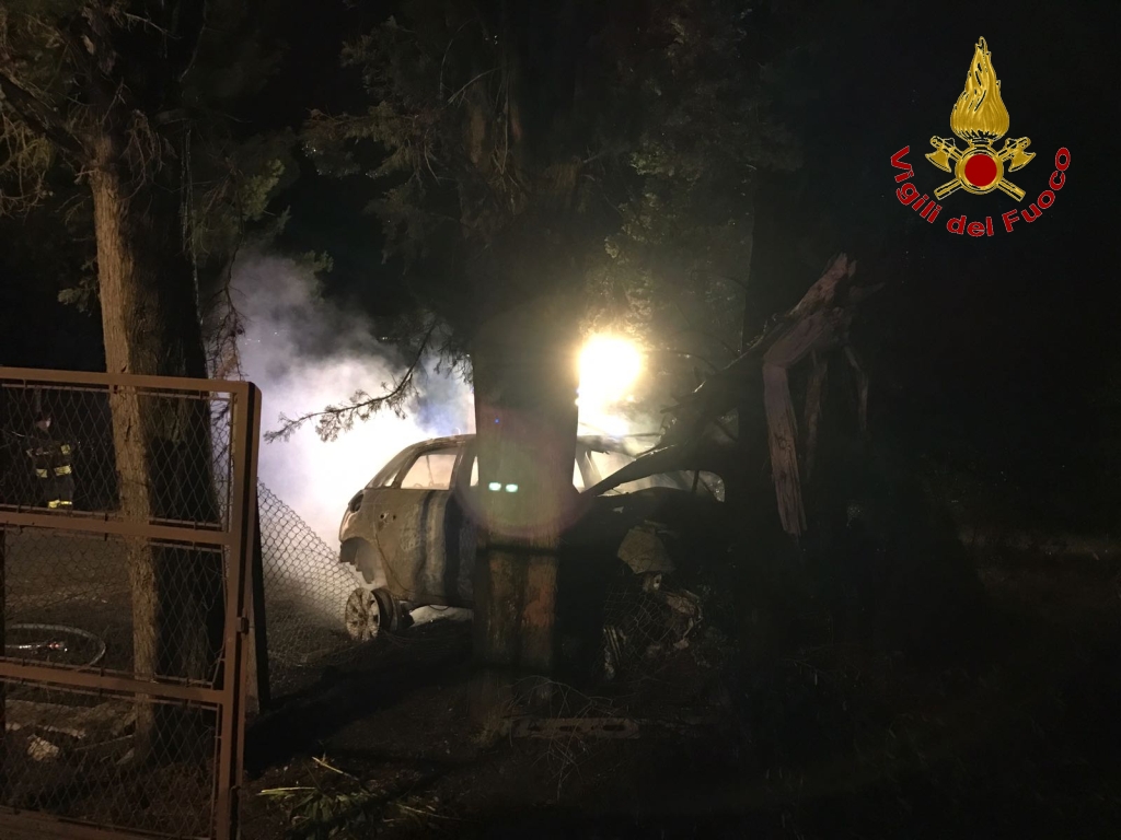 San Miniato (Pisa): cadavere carbonizzato nell’auto in fiamme, finita fuori strada (Foto)