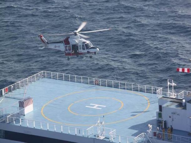 Il velivolo, che si è alzato dalla base aeromobili di Sarzana (La Spezia) con a bordo anche un medico, è stato autorizzato dal comando generale del corpo delle Capitanerie di porto, su richiesta del comandante della nave, dopo che il medico di bordo aveva consultato il centro internazionale radio medico di Roma. L’elicottero è riuscito ad atterrare sul ponte della nave al largo dell’isola d’Elba e ha caricato il paziente trasferendolo poi a Livorno.