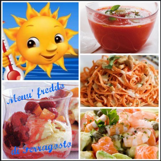 Si approssima il ferragosto, le previsioni sono bollenti! Il solo pensiero di mettersi ai fornelli per preparare un pasto fa passare l’ appetito, ma non scoraggiamoci. Con questo menu’vengo a proporvi quattro piatti accattivanti, semplici,freschi ma pieni di vitamine e di sane proteine, che potrete preparare in poco tempo e, cosa non trascurabile, senza accendere fuochi e forni. Buon appetito e buon ferragosto a tutti!