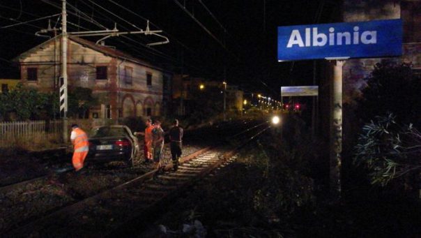 GROSSETO  – Alla vista dei carabinieri che stavano passando nella corsia opposta ha accelerato, sfondando la sbarra del passaggio a livello della stazione di Albinia (Grosseto) andando a fermarsi sui binari della linea Tirrenica. Alla guida c’era un minorenne con un amico, che sono stati bloccati dai militari: i carabinieri hanno inseguito i due che si erano dati alla fuga e li hanno fermati. Alla guida della Audi A4 di proprietà del fratello c’era un 17 enne, ovviamente senza patente, con a bordo un amico. I due hanno riportato ferite lievi. La linea Tirrenica è stata interrotta dalle 2.30 fino alle 4.45.