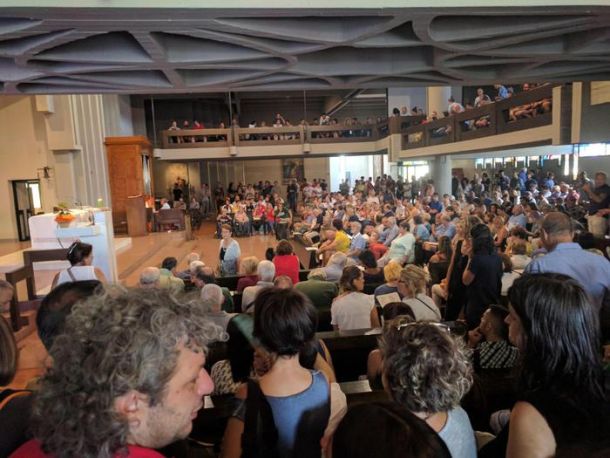 PISTOIA – Alla messa celebrata da don massimo Biancalani, assistito dal vicario del vescovo di Pistoia, erano presenti tantissime persone, forze dell’ordine e vigili urbani sono schierati per prevenire incidenti, molte anche le telecamere e i giornalisti. Presenti anche esponenti del Pd che hanno promosso un sit-in di sostegno al prete. Tra loro lo stesso segretario regionale del partito Dario Parrini: «Pensavo fosse necessario fare questo sit-in e soprattutto esserci», ha detto.