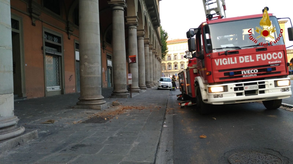 Firenze, piazza della Libertà: cade frammento cornicione. Area transennata