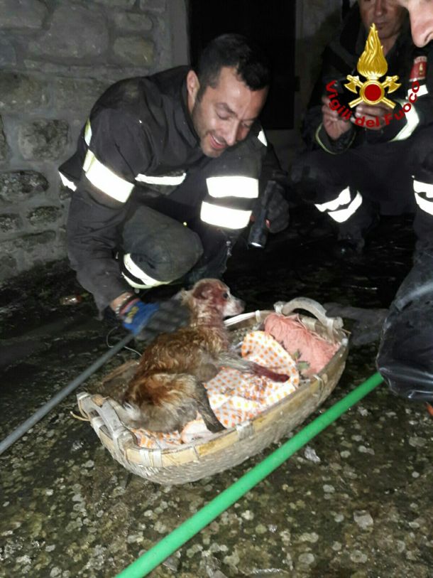 Il cagnolino salvato dai vigili del fuoco a Chiusi