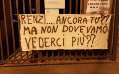 AREZZO – L’hanno aspettato fuori, rispettando le indicazioni della questura. Così due rappresentanze dei comitati Vittime Salvabanche e Azzerati hanno atteso l’arrivo del segretario del Pd Matteo Renzi davanti alla Casa delle Energie di Arezzo, dove ha presentato il suo ultimo libro Avanti. I manifestanti, una quarantina, hanno esposto striscioni di protesta mantenendosi sul marciapiede antistante la struttura per precise disposizioni della questura che coordina un massiccio servizio
