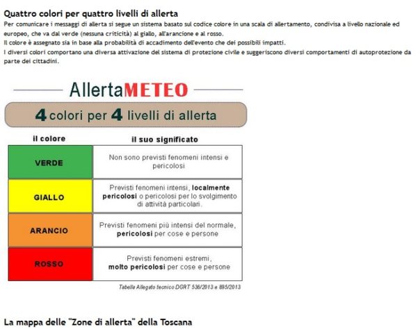Dallo stesso sito della protezione civile regionale traiamo gli elementi per giudicare, premesso che la gestione del sistema dell’allerta e la sua valutazione è di stretta competenza delle regioni. Vi si legge: Il sistema di allertamento serve a segnalare preventivamente eventi potenzialmente pericolosi, a attivare i soggetti istituzionali competenti, a mettere in atto misure protettive, ove previste dai piani di protezione civile;