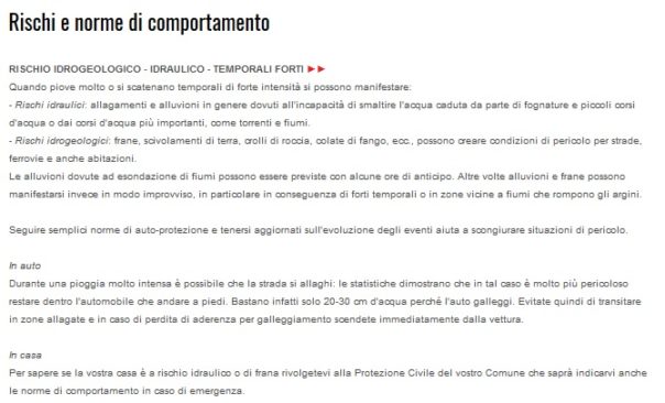 Nel sito sono indicati rischi e norme di comportamento da seguire anche da parte dei cittadini;