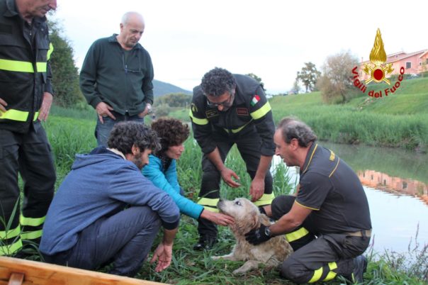 PISA – I vigili del fuoco di Pisa, alle 19,00 circa, sono intervenuti a seguito di segnalazione della polizia municipale locale nel comune di Calcinaia in località Fornacette lungo il fiume emissario all’altezza del cimitero per il recupero di un cane di razza Labrador. Il cane, scappato alla proprietà a seguito degli effetti del temporale, era rimasto attaccato alcuni rami della sponda del fiume ormai infreddolito e stremato.