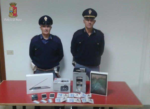 AREZZO – Lo scorso fine settimana, la Polizia Stradale di Arezzo ha arrestato due truffatori, di circa 30 anni e originari della Campania che, con documenti falsi, avevano poco prima acquistato p.c, stampanti e altra merce. I due sono stati rintracciati di sera a bordo di una Renault, vicino Monte San Savino, mentre stavano rientrando verso Napoli. L’auto è transitata davanti a una pattuglia della Sottosezione di Battifolle, che stava monitorando il traffico sull’A/1.