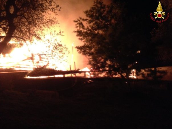 Grosseto: incendio distrugge casolare di legno e fa esplodere serbatoio gpl. Intervento dei vigili del fuoco